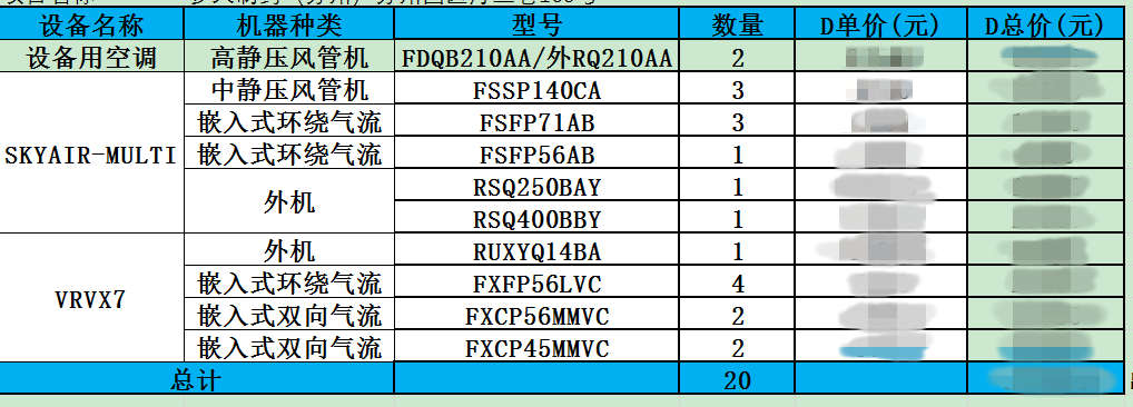 項目內容:大金VRV多聯機