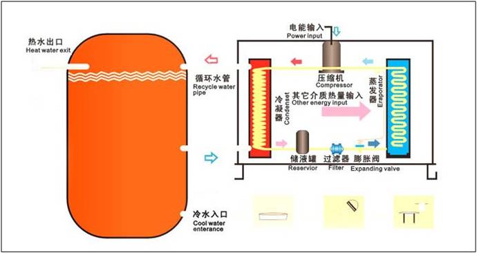 空氣能熱泵熱水器也稱(chēng)“空氣源熱泵熱水器”“熱泵熱水器”“空氣能熱水器” 等?諝饽軣岜脽崴鳎ǹ諝庠礋岜脽崴鳎┲械臒岜媚馨芽諝庵械牡蜏?zé)崮芪者M(jìn)來(lái),經(jīng)過(guò)壓縮機(jī)壓縮后轉(zhuǎn)化為高溫?zé)崮埽訜崴疁。這種熱水器(空氣源熱泵熱水器)具有高效節(jié)能的特點(diǎn),其耗電量是同等容量電熱水器的1/4,是燃?xì)鉄崴鞯?/3?諝饽軣岜脽崴鳎ǹ諝庠礋岜脽崴鳎┑某跗谕顿Y是煤氣、天然氣、電熱水器的三至五倍,但其日常運(yùn)行成本較低。