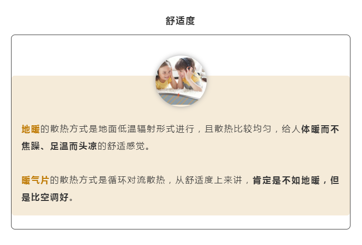 以上就是我們暖氣片和地暖進行的對比,相信大家對兩種取暖方式也有了一個基礎的認識,根據兩種不同的取暖方式,我們可以進行選擇,如果家中沒有什么人,我們是上班族的話可以選擇暖氣片進行取暖,這樣加熱效果比較快,如果家中經常有人可以選擇安裝地暖!